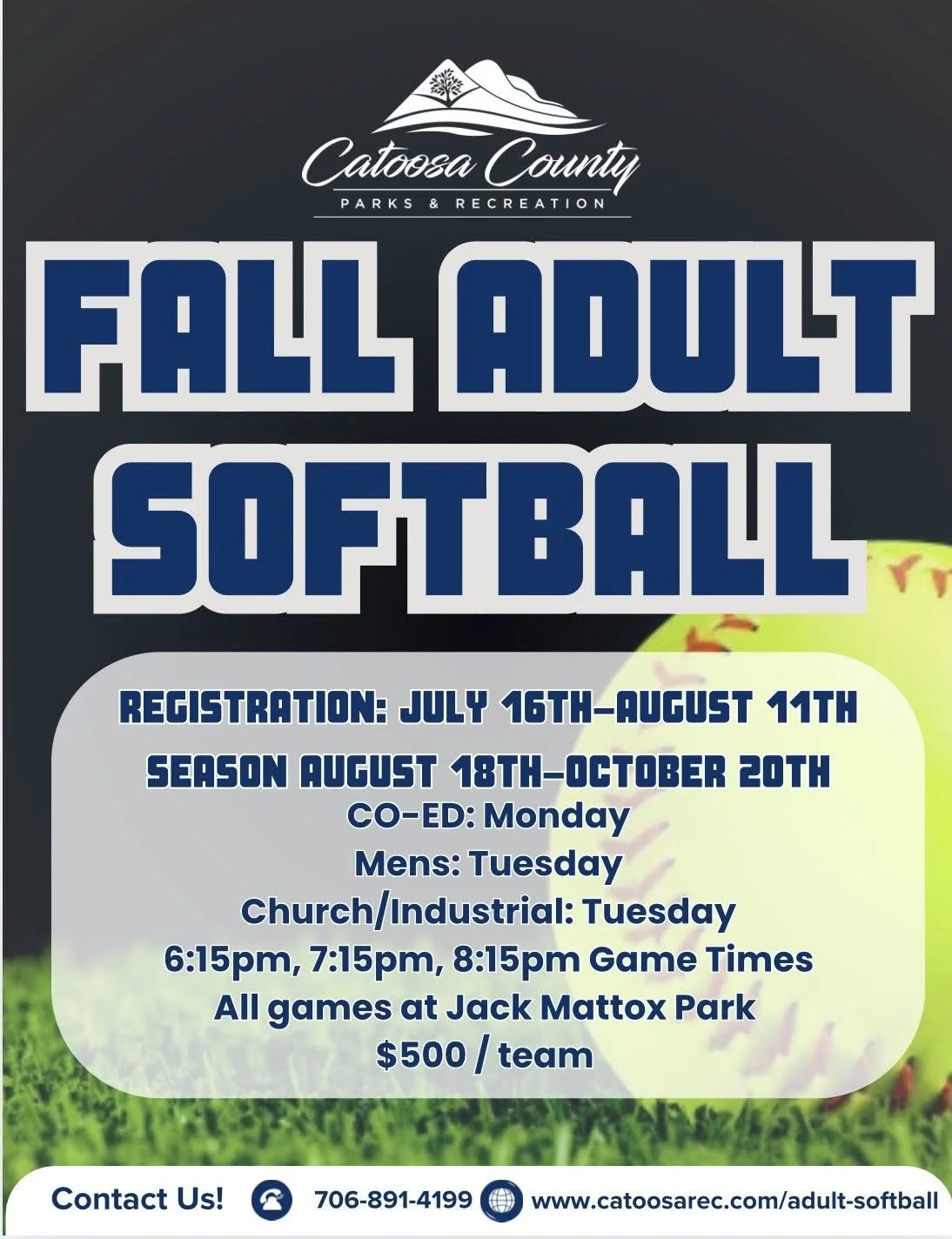 Get ready for our Adult Co-ed & Men’s Softball League for the Fall Season!