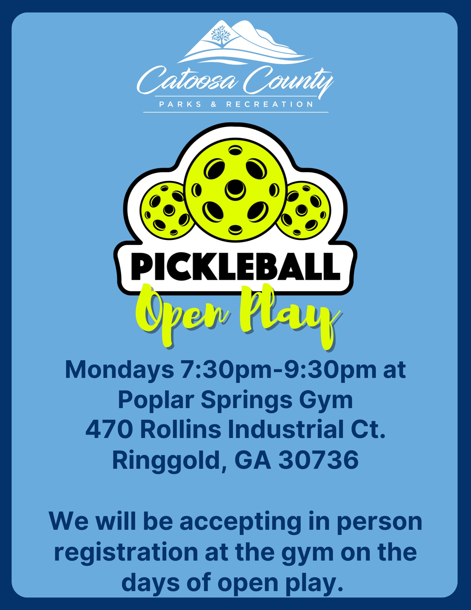 Join Catoosa County Parks & Recreation for an exciting DUPR Round Robin Pickleball Event! Whether you're a seasoned player or just getting started, this event is a great way to compete, improve your skills, and meet other pickleball enthusiasts.